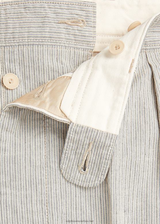 <п><п>Панталоне правог кроја направљене од јапанског памука обојеног пређом. дупло плисирано предње. корозо дугмад.<п>п>