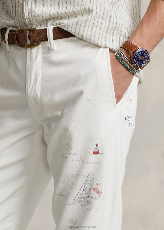 мушкарци Ralph Lauren цхино панталоне равног кроја са наутичком графиком V2V441179 прање палубе бело/наутичко