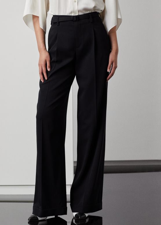 <п><п>шира верзија наших легендарних стамфорд панталона, ацклие дефинише женске панталоне инспирисане мушком одећом Ралфа Лорена, јер су дизајниране са предњим наборима и оштрим наборима на ногама. његова вунена габардинска тканина, ткана у поштованом италијанском млину, даје меку руку и лепу завесу. самопојас уздигнут ситном квадратном копчом ствара дефиницију у струку, док високи крој изазива снажну женствену естетику.<п>