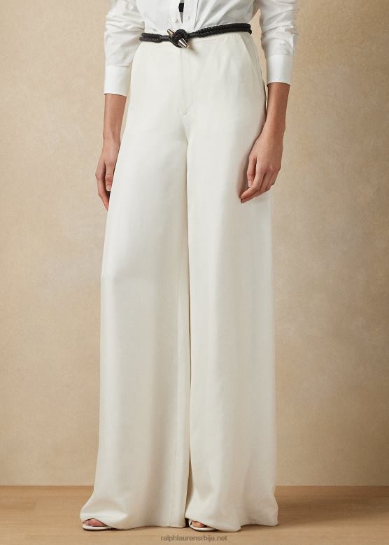 Жене Ralph Lauren елаине свилене шантунг панталоне широких ногавица V2V443498 бело