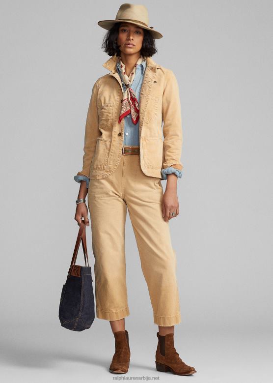 Жене Ralph Lauren изрезане памучне платнене панталоне V2V443645 каки