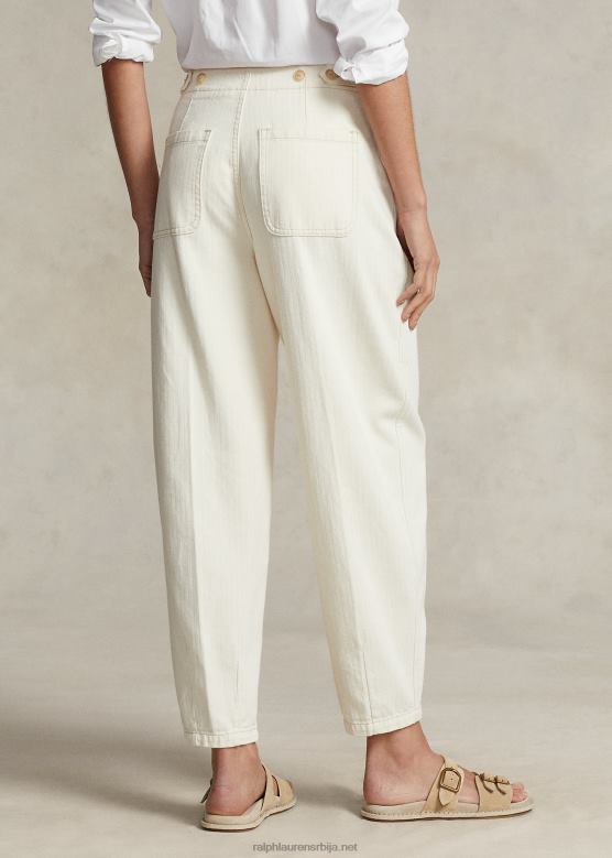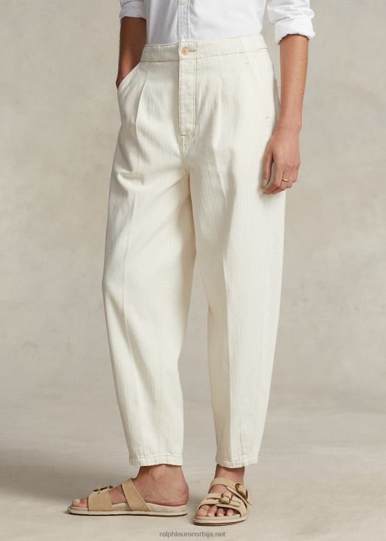 Жене Ralph Lauren плисиране памучне панталоне од рибље кости V2V443201 природним