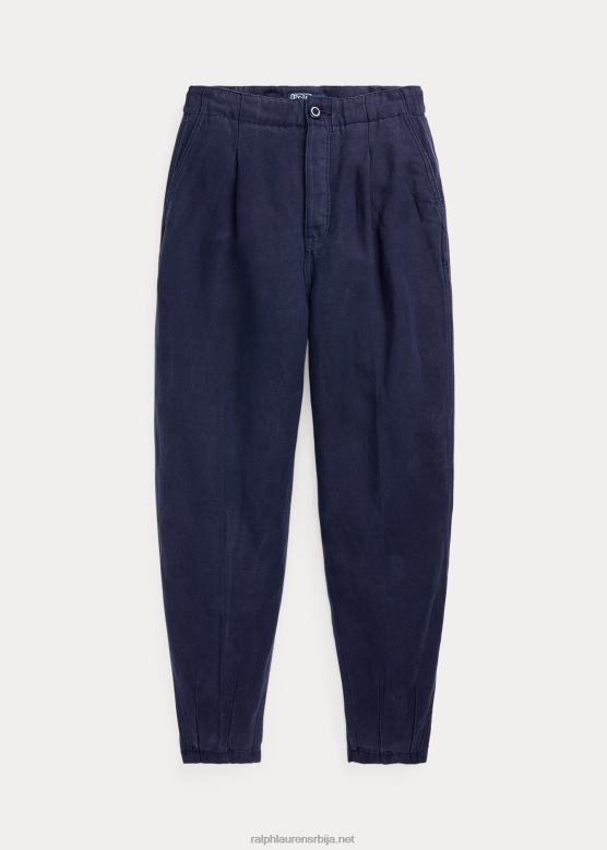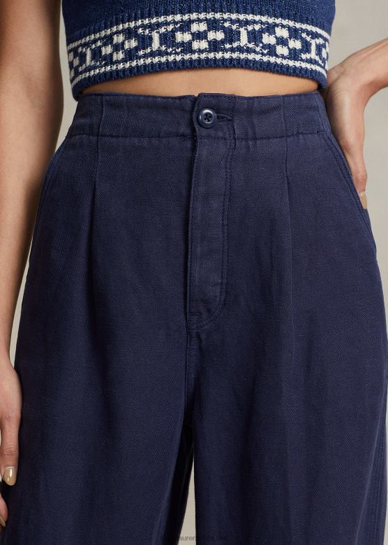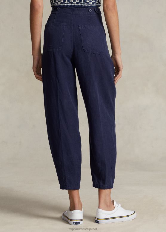 Жене Ralph Lauren плисиране панталоне од кепера од мешавине лана V2V443027 морнарица