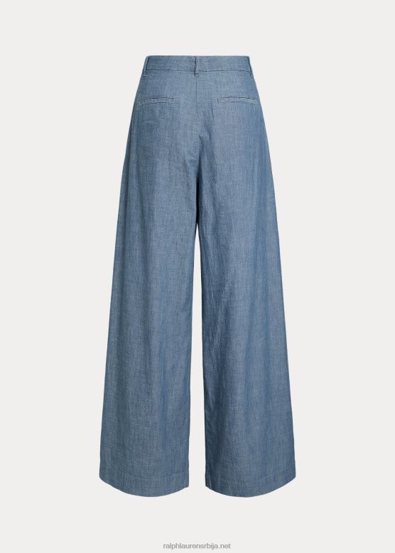 Жене Ralph Lauren плисиране шамбре панталоне широких ногавица V2V444825 берил плаво прање