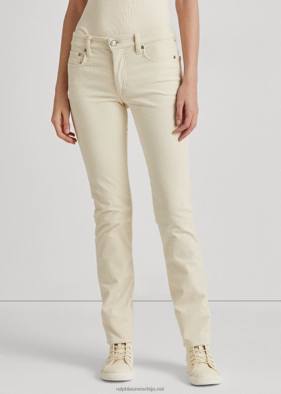 Жене Ralph Lauren равне панталоне средњег раста од растезљивог сумота V2V449504 крема од маскарпонеа