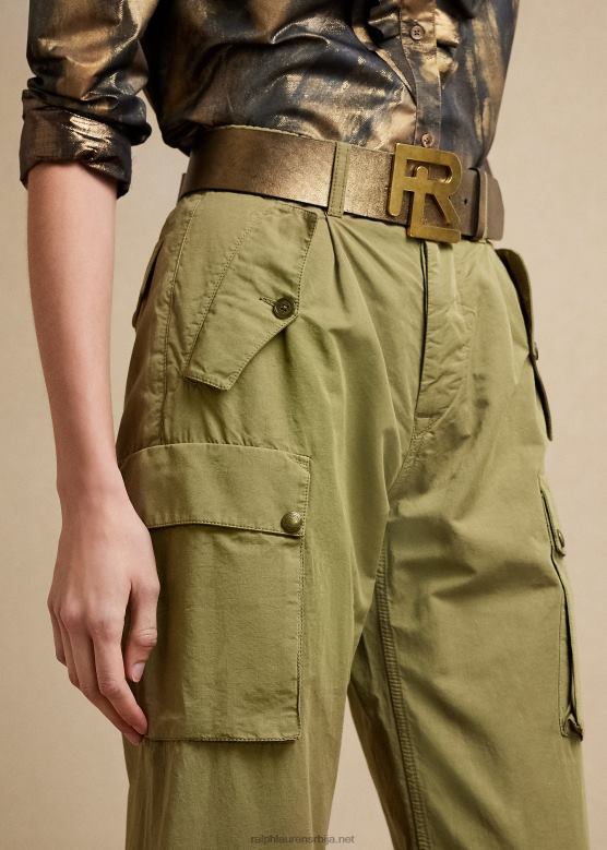 Жене Ralph Lauren цхарлее памучно-ланене кепер панталоне V2V443582 лишајева зелена