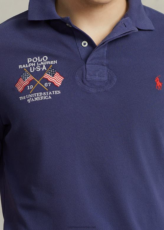 мушкарци Ralph Lauren поло мајица класичног кроја са везеном заставом V2V448642 бродска морнарица