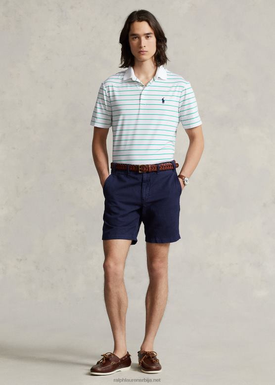 <п><п>стандард америчког стила од 1972. године, поло мајица је имитирана, али никада није упарена. током деценија, Ралф Лорен је поново осмислио свој препознатљив стил у широком спектру боја и кроја, али су сви задржали квалитет и пажњу посвећену детаљима култног оригинала. ова пругаста верзија је направљена од растезљивог дреса који одводи влагу и укључује рециклирани полиестер, појачавајући циљ Ралфа Лорена да креира производе највишег квалитета, узимајући у обзир наше окружење.<п>п>