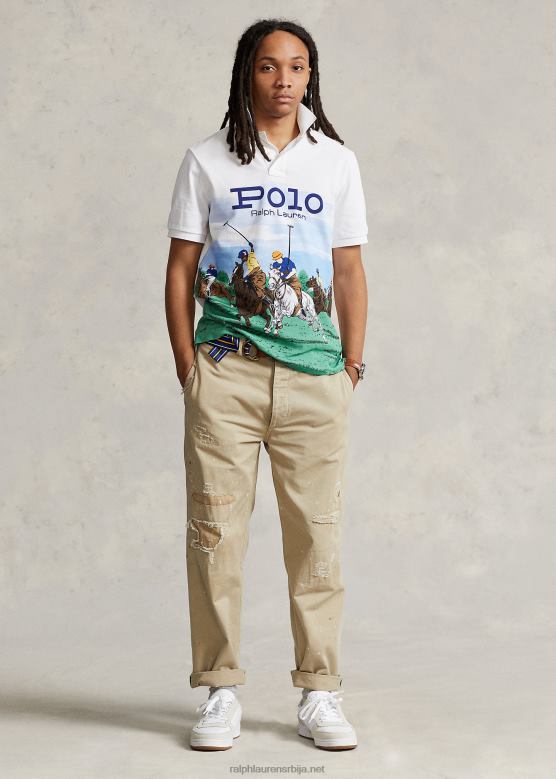<п><п>стандард америчког стила од 1972. године, поло мајица је имитирана, али никада није упарена. током деценија, Ралф Лорен је поново осмислио свој препознатљив стил у широком спектру боја и кроја, али су сви задржали квалитет и пажњу посвећену детаљима култног оригинала. ова мрежаста верзија садржи винтаге принт инспирисан постерима живахне поло утакмице.<п>п>