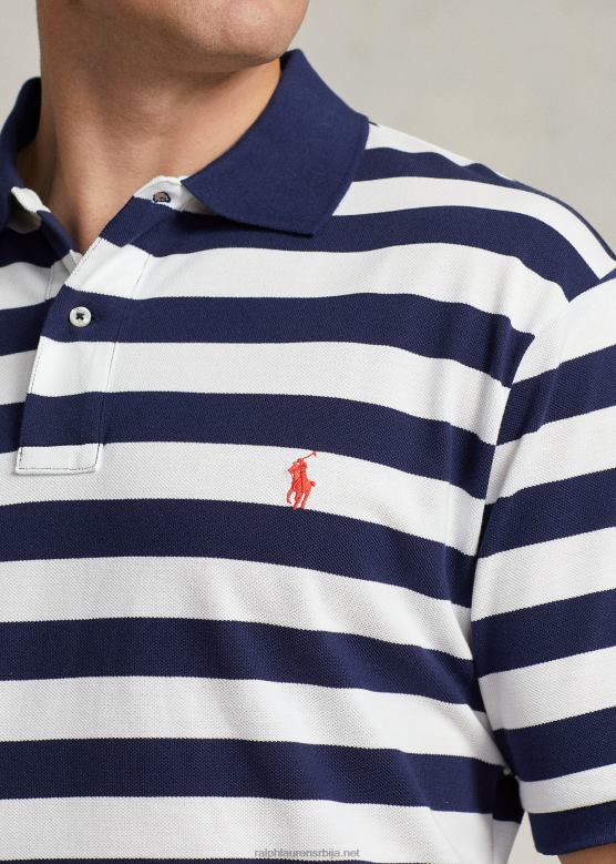 мушкарци Ralph Lauren пругаста мрежаста поло мајица V2V441492 невпорт морнарско/бела