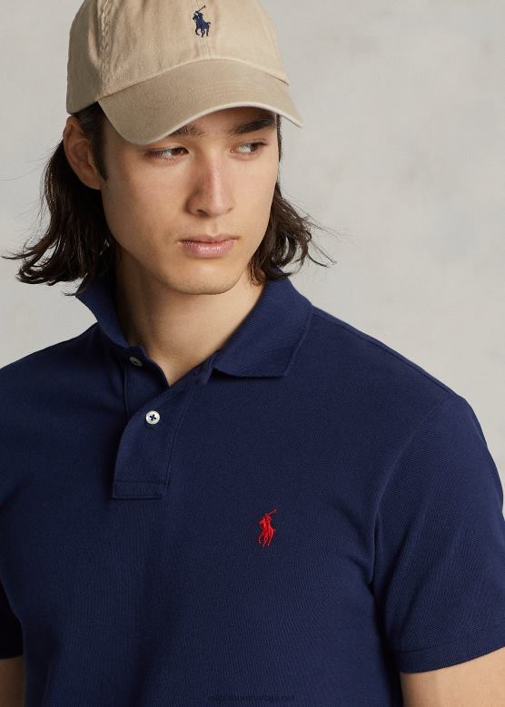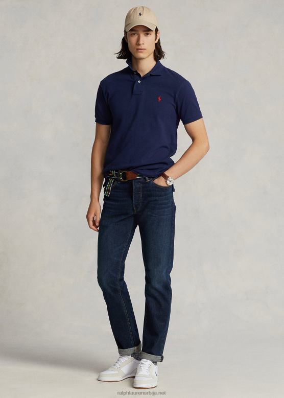 мушкарци Ralph Lauren танка мрежаста поло мајица V2V445 невпорт морнарско/црвена
