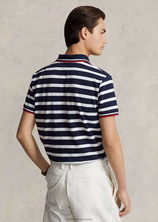 мушкарци Ralph Lauren цустом слим поло медвед мрежаста поло мајица V2V44675 крстарица морнарско/бела