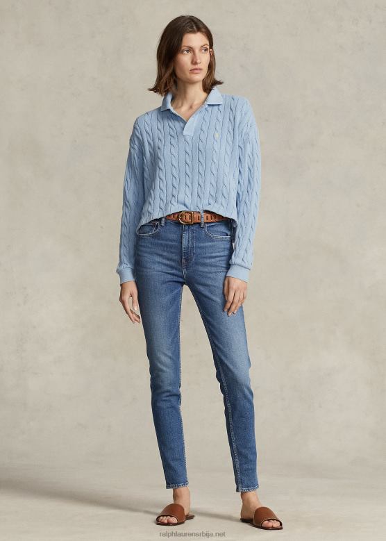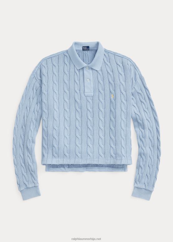 Жене Ralph Lauren кабловска памучна поло мајица V2V443174 Плави пудер