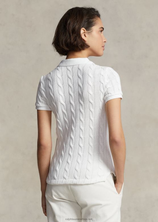 Жене Ralph Lauren слим фит поло мајица од кабловског плетења V2V443025 бео