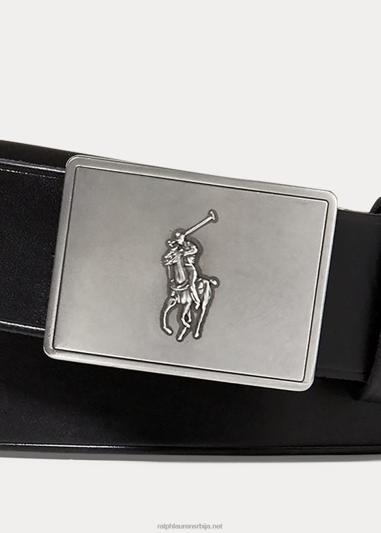 мушкарци Ralph Lauren кожни каиш од понија плакета V2V442563 црн
