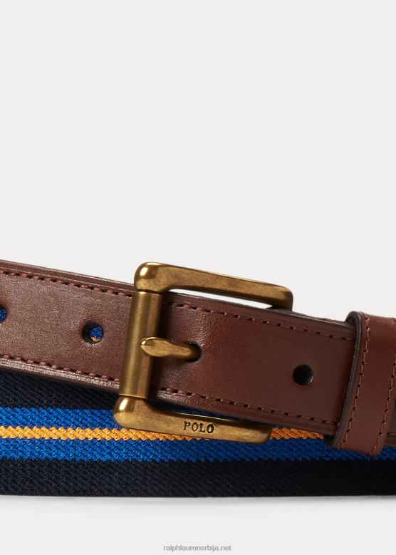 мушкарци Ralph Lauren пругасти појас са кожним украсима V2V442294 морнарско/краљевско/златно