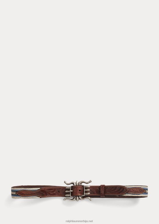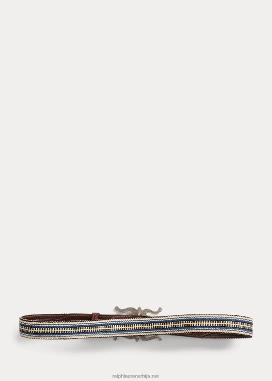 мушкарци Ralph Lauren ручно ткани каиш од жакарда и коже V2V442229 крем мулти/браон