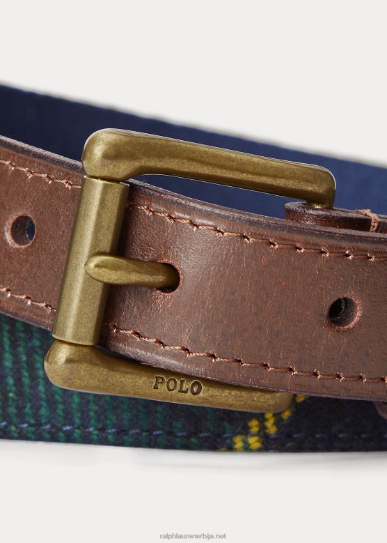 мушкарци Ralph Lauren тартан појас са кожним украсима V2V448754 црвени мулти