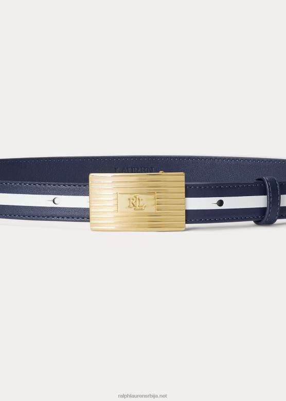 Жене Ralph Lauren мотором токован двобојни кожни каиш V2V444928 префињена морнарско/бела пруга