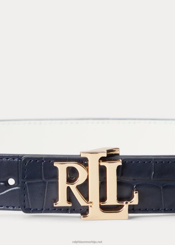 Жене Ralph Lauren реверзибилни кожни ремен са логотипом V2V444905 префињена морнарско/бела