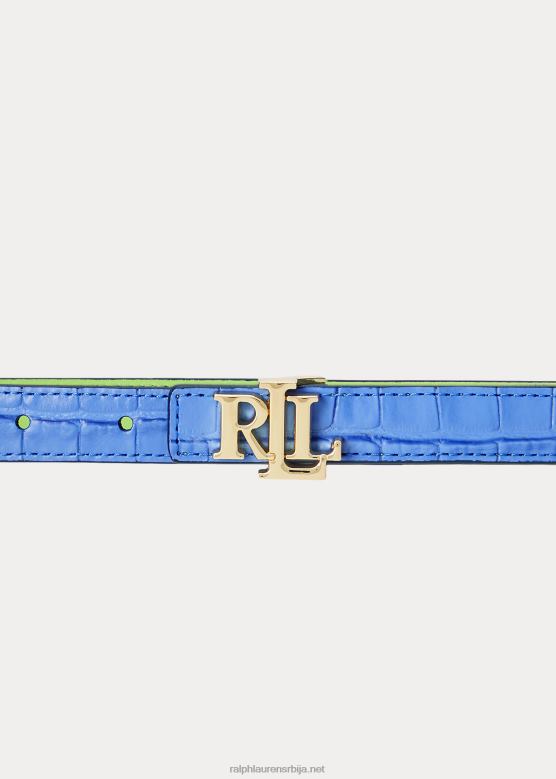 Жене Ralph Lauren реверзибилни кожни уски ремен са логотипом V2V444907 Нова Енглеска плава/ривијера
