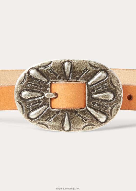 Жене Ralph Lauren уски кожни каиш са копчом V2V445467 природним