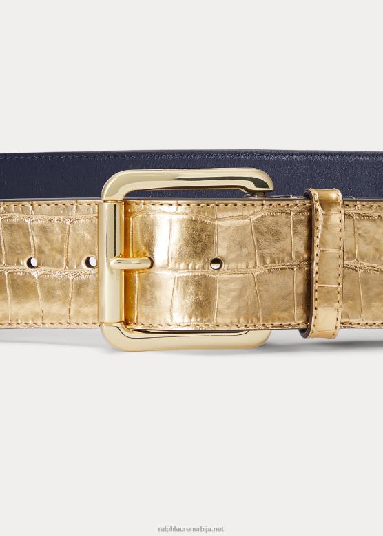 Жене Ralph Lauren металик рељефни кожни широки појас V2V444955 модерно злато