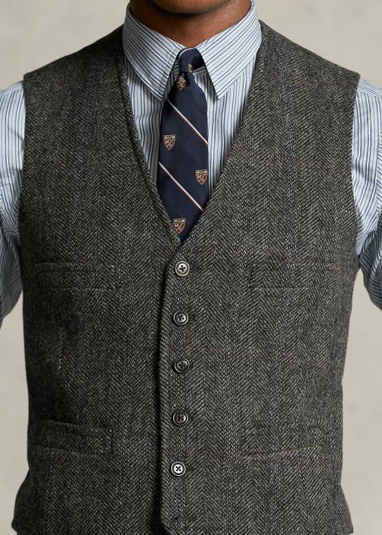 <п><п>Ралф Лорен је поносан на партнерство са Морехоусеом, престижним историјским црначким колеџем, како би представио прву колекцију ове врсте. Инспирисан богатим наслеђем и цењеном традицијом колеџа Морехоусе, овај прслук је скројен у Италији од ексклузивне тканине рибље кости која се добија из познатог британског млина.<п>п>