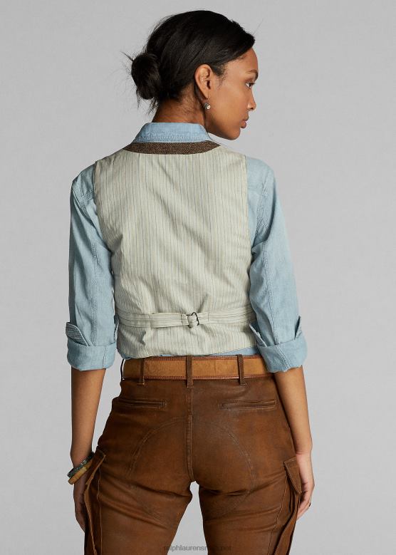 <п><п>уграђен прслук од вуне и памука. Тканине за предње плоче потичу из историјског енглеског млина. задња плоча је изрезана од пругастог памука јаспе подесивог закопчаног леђа. корозо дугмад.<п>п>