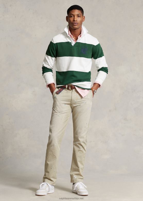 мушкарци Ralph Lauren рагби мајица класичног кроја са пругама V2V441122 нова шума/палуба бела