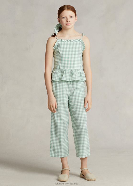 клинци Ralph Lauren гингхам памук мадрас пеплум топ V2V446726 избледела мента/децквасх бела