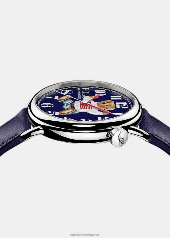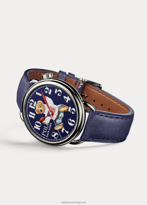 мушкарци Ralph Lauren седећи поло медвед 42 мм челични сат V2V442798 плави бројчаник