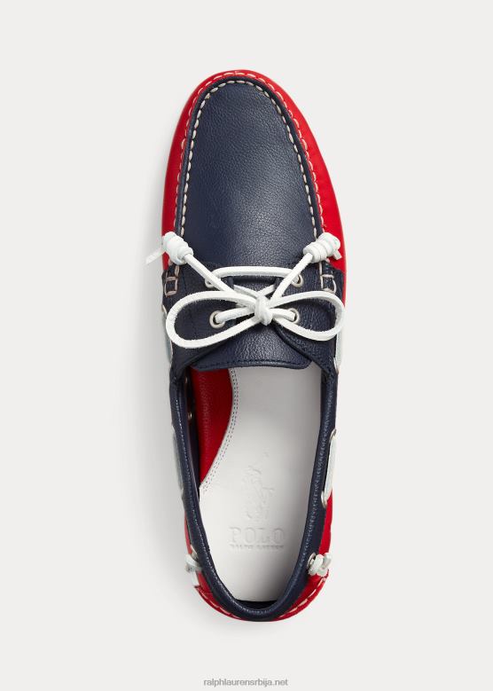 мушкарци Ralph Lauren мертон двобојна кожна ципела за чамац V2V442079 морнарско/црвено