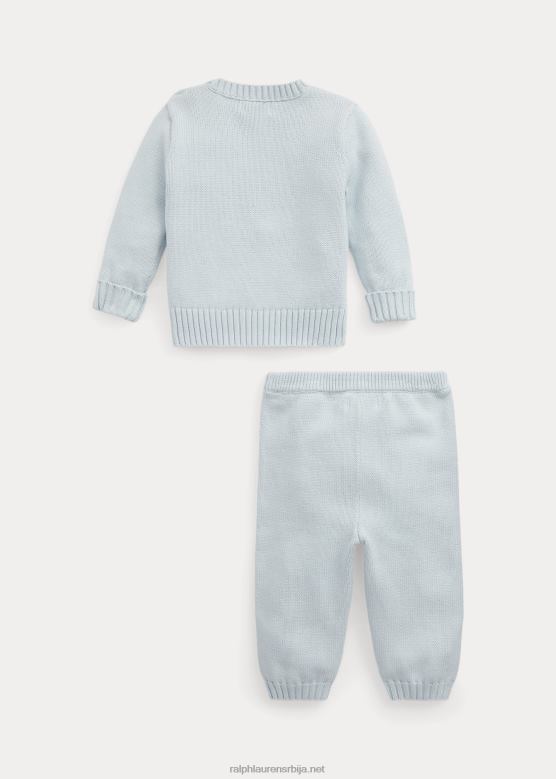 беба Ralph Lauren памучни џемпер и панталоне за седећи медвед V2V447802 берил плава