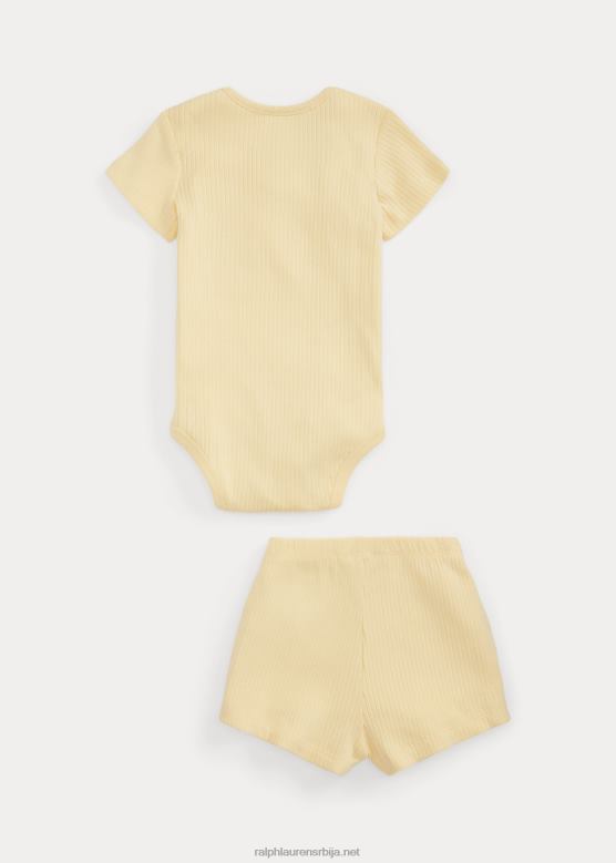 беба Ralph Lauren ребрасти памучни боди и кратки комплет V2V447769 т-птица жута
