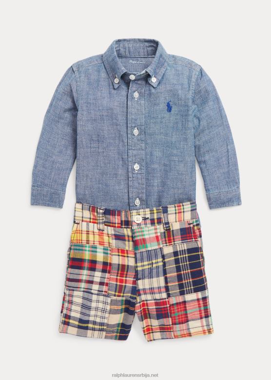 беба Ralph Lauren цхамбраи кошуља и мадрас кратки сет V2V448189 мадрас цхамбраи