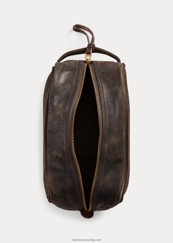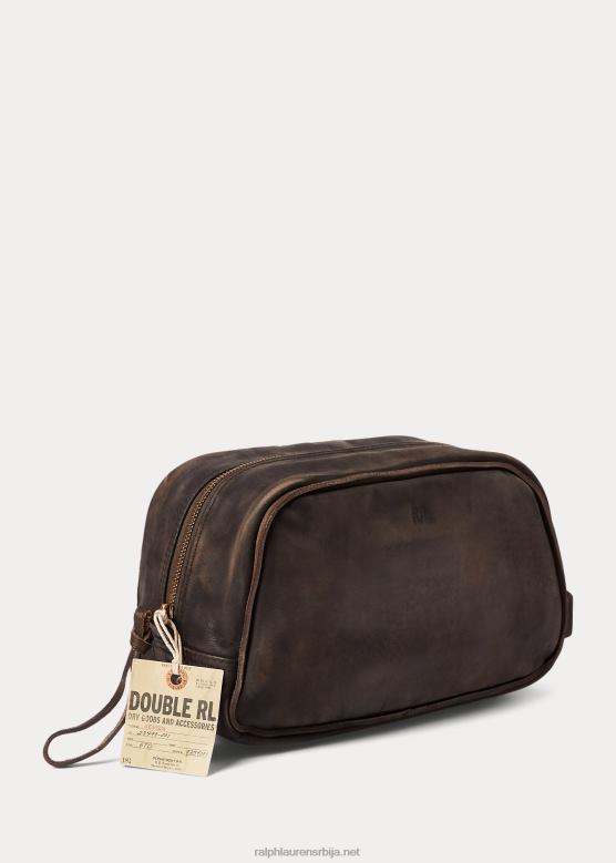 мушкарци Ralph Lauren кожна путна торбица V2V448850 тамно браон