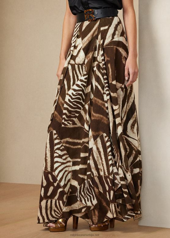 Жене Ralph Lauren лилиоса ланена сукња са зебрастим принтом V2V449280 браон/крем мулти