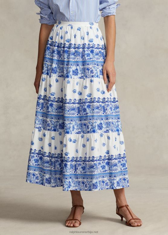 Жене Ralph Lauren памучна сукња са цветним пругама V2V443119 плава цветна трака