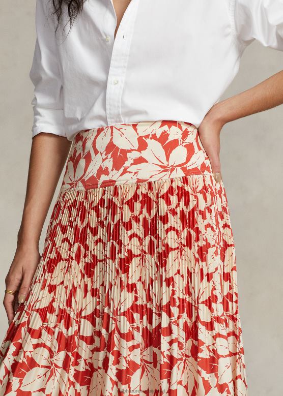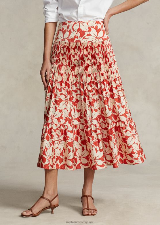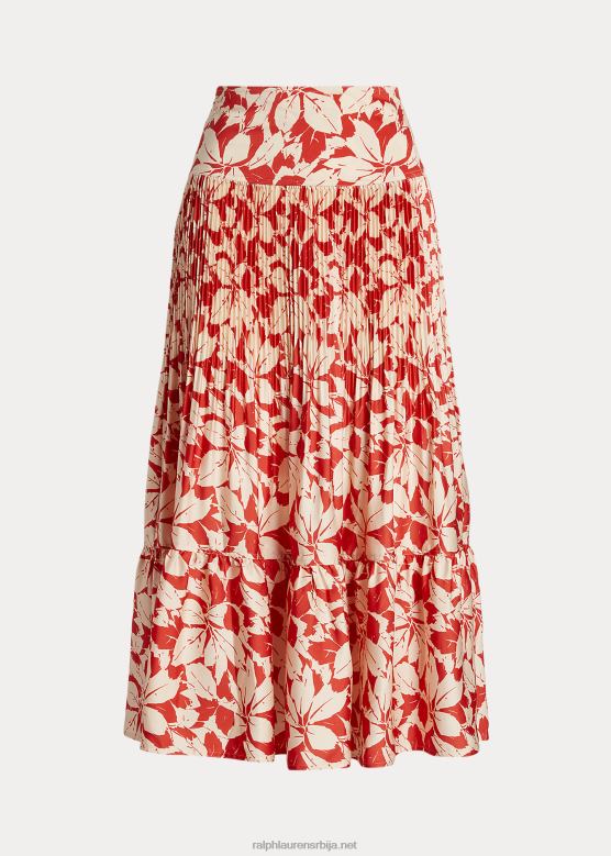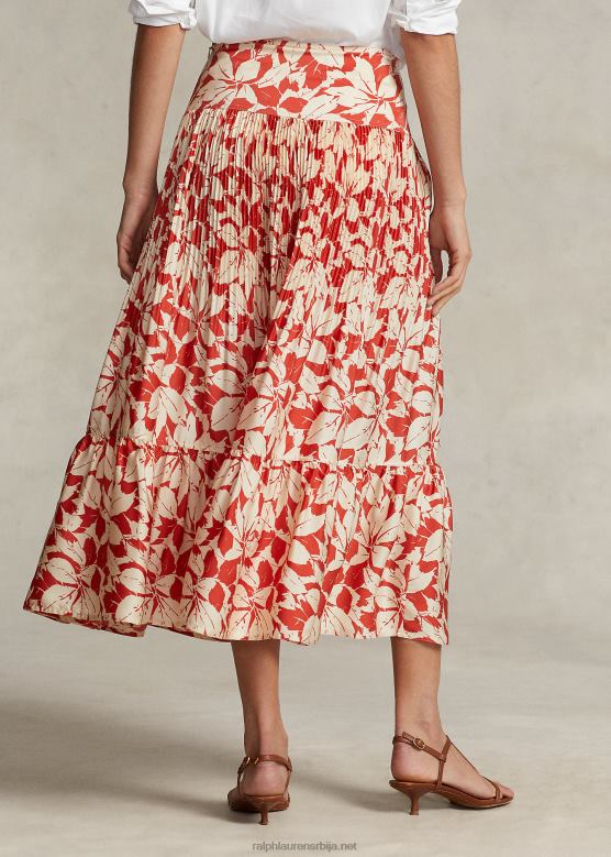 Жене Ralph Lauren сатенска плисирана миди сукња са штампом V2V443196 отисак листова брезе