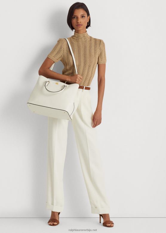 Жене Ralph Lauren кожна велика марци торба V2V445362 ванила