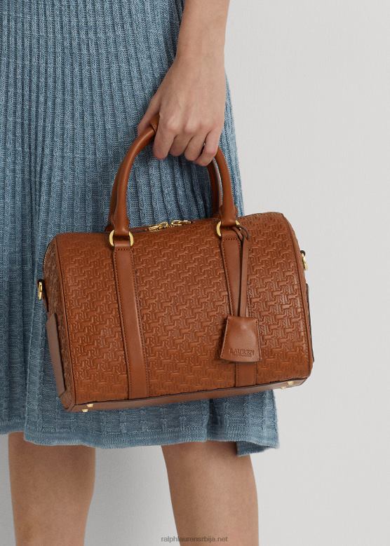 Жене Ralph Lauren утиснута кожна средња каден торба V2V445416 тан/буфф