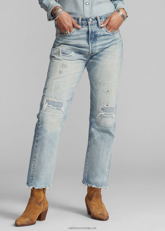 <п><п>равне фармерке од 13,7 оз. тексас са рубовима. леви кепер је ткан шатлом у Јапану. шлиц на дугмиће. ''ррл'' вез на џепу за новчић. сирови рубови. јако опрана и поправљена. санфоризовано да би се смањило скупљање.<п>п>