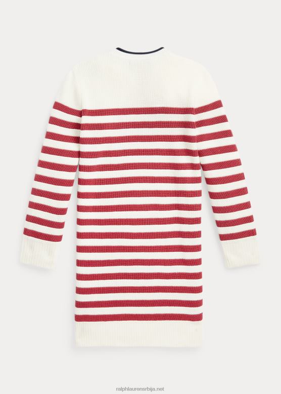 клинци Ralph Lauren пругаста памучна џемпер хаљина V2V447459 кајмак / чили паприка
