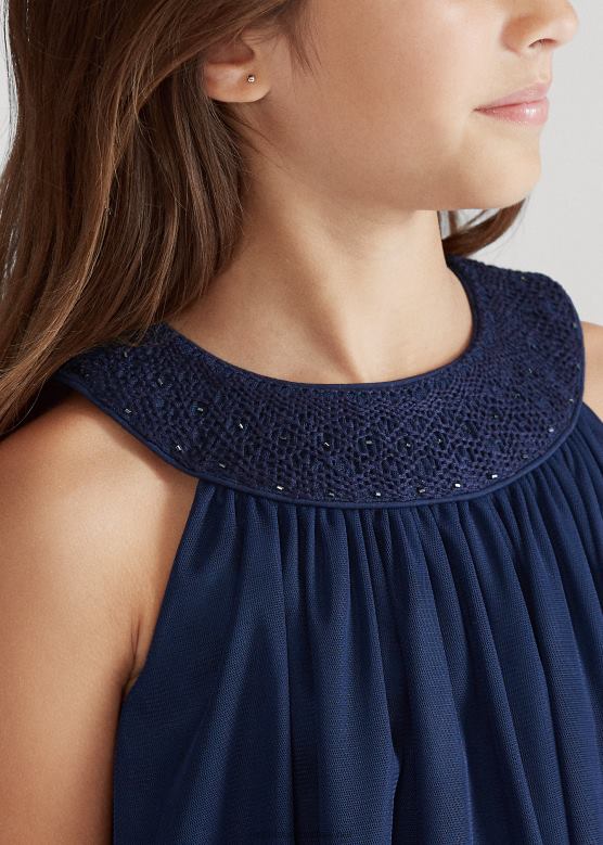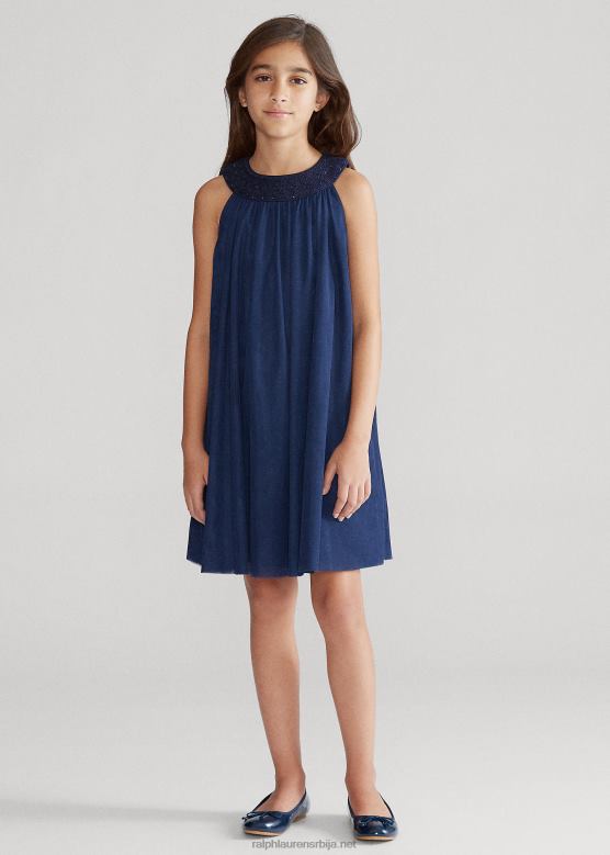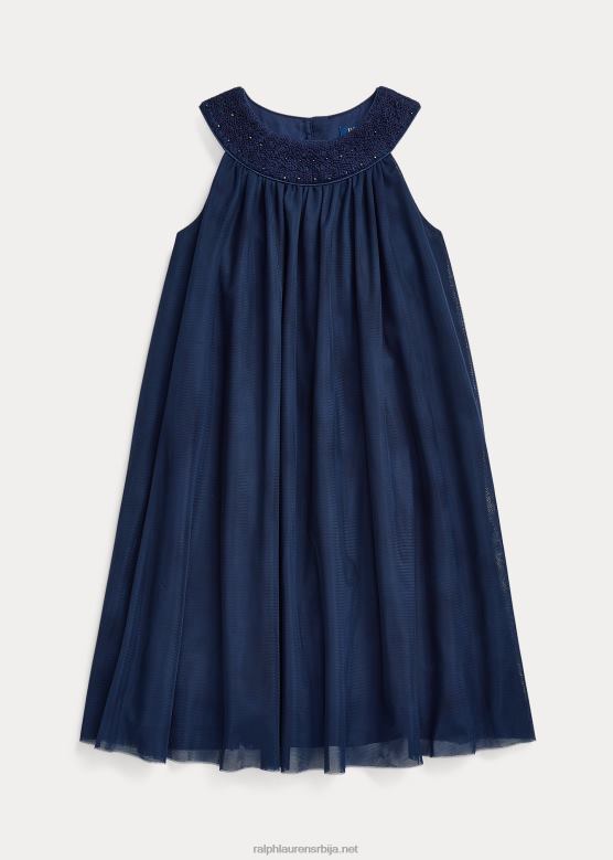 клинци Ralph Lauren ручно обрађена хаљина од тила V2V447023 префињена морнарица