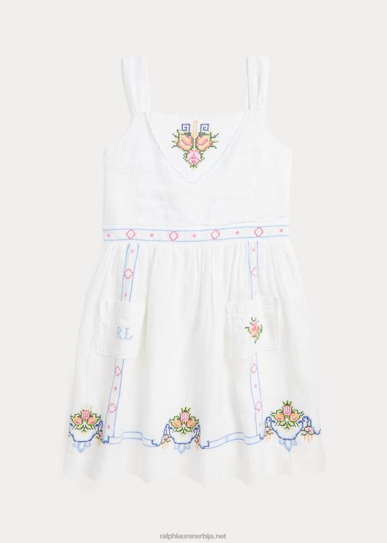 клинци Ralph Lauren цветно везена ланена хаљина V2V447154 бео