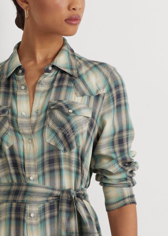 Početna| Жене| одећу| хаљине| Жене Ralph Lauren карирана кошуља од кепера V2V444902 плаво/зелено мулти