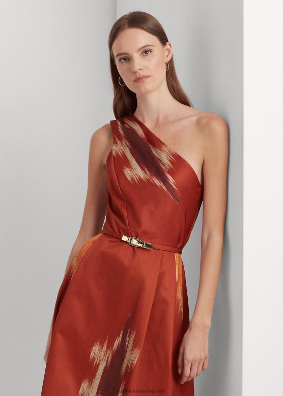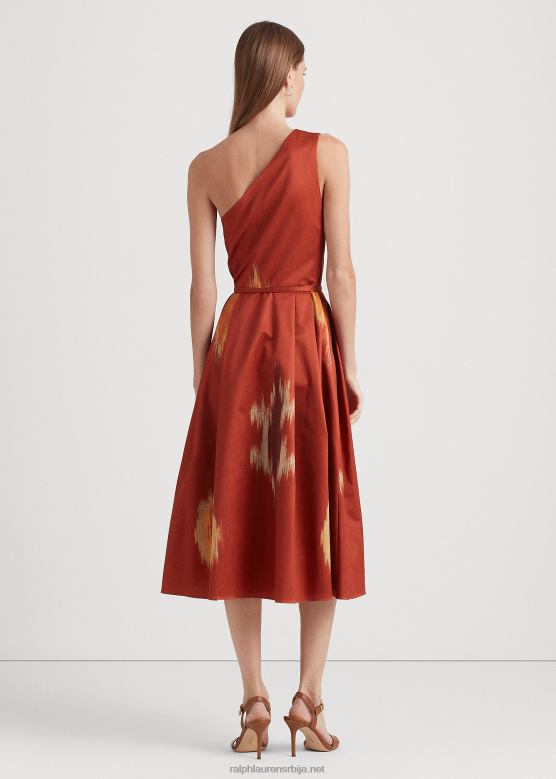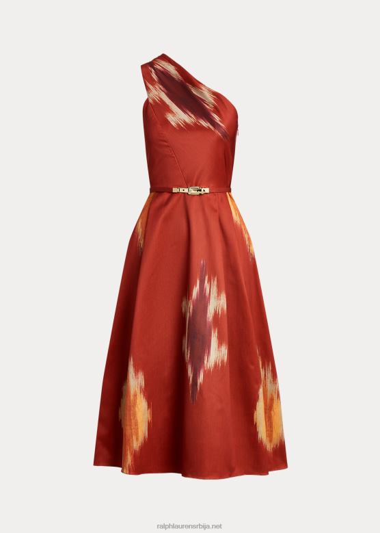 <п><п>самопојас наглашава широку силуету ове хаљине са једним раме, која је детаљна елегантним наборима и изведена у структурираном ланцу за углађени изглед. приказује један од мотива сезоне инспирисан техникама икат-ткања традиционалним за Индију, које се одликују пернатим пламеним и магловитим шарама. Ралф Лорен у партнерству са бољим памуком како би унапредио производњу памука на глобалном нивоу.<п>
