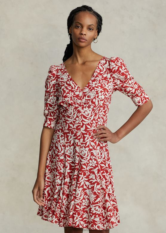 Жене Ralph Lauren креп хаљина са цветним овчијим рукавима V2V449206 пролећни љиљан цветни