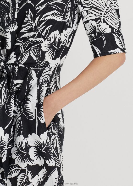 Жене Ralph Lauren ланена кошуља са цветном краватом V2V444341 црно бели
